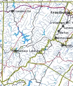 | Largest town | Mountain Lake Park |