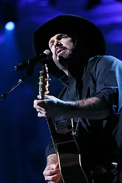 Troyal Garth Brooks (born February 7, 1962) is an American country singer and songwriter. His musical style blends traditional country with pop and rock elements, which has earned him his immense popularity,[2] particularly in the United States,[3] with success on the country music single and album charts,[4] multi-platinum recordings and record-breaking live performances, while also crossing over into the mainstream pop arena.[5]