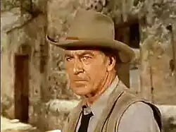 In Cecil B. DeMille's sprawling frontier epic The Plainsman, his first of four films with the director, Cooper portrays Wild Bill Hickok in a highly fictionalized version of the opening of the American western frontier.[127] The film was an even greater box-office hit than its predecessor,[128] due in large part to Jean Arthur's definitive depiction of Calamity Jane and Cooper's inspired portrayal of Hickok as an enigmatic figure of "deepening mythic substance".[129] That year, Cooper appeared for the first time on the Motion Picture Herald exhibitor's poll of top-10 film personalities, where he remained for the next 23 years.[130]