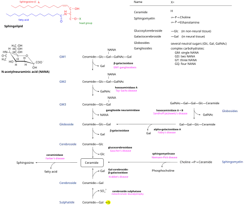 - ^ Hein LK, Meikle PJ, Hopwood JJ, Fuller M (December 2007). "Secondary sphingolipid accumulation in a macrophage model of Gaucher disease". Molecular Genetics and Metabolism. 92 (4): 336–45. doi:10.1016/j.ymgme.2007.08.001. PMID 17881272.