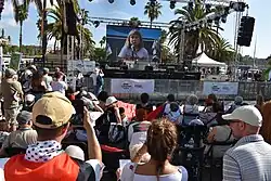 The Women's Boat to Gaza (WBG) was an initiative by the Freedom Flotilla Coalition in 2016 to challenge the Israeli naval blockade of the Gaza Strip.[53][54] The WBG consisted of an entirely female crew and one ship, Zaytouna-Oliva. It started from Barcelona on 14 September 2016 and visited Ajaccio, Corsica and Messina, Sicily along the way.[55] On 5 October 2016, the Israeli Navy intercepted the Women's Boat to Gaza some 14 miles outside the 20-mile "Security Zone" off the Palestinian coast,[56] and detained its crew members, who were taken to the Israeli port of Ashdod. The activists were subsequently deported to their home countries.[57][58][59][56]