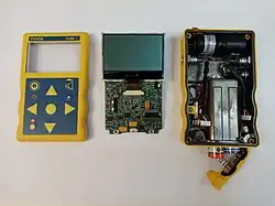 A modern one-piece Geiger–Müller counter, including Geiger–Müller tube type 70 019 (at the top)