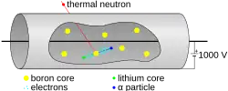 A variation of the Geiger tube can be used to exclusively measure radiation dosage from neutrons rather than from gammas by the process of neutron capture. The tube, which can contain the fill gas boron trifluoride or helium-3, is surrounded by a plastic moderator that reduces neutron energies prior to capture. When a capture occurs in the fill gas, the energy released is registered in the detector.