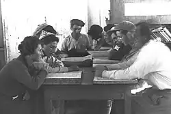 Members of Kvutzat Rodges studying the Gemara (June 1, 1935)