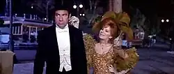 In 1966, Kelly starred in a musical television special for CBS titled Gene Kelly in New York, New York.[35] The special focuses on Gene Kelly in a musical tour around Manhattan, dancing along such landmarks as Rockefeller Center, the Plaza Hotel, and the Museum of Modern Art, which serve as backdrops for the show's entertaining production numbers.[36] The special was written by Woody Allen, who also stars alongside Kelly. Guest stars included choreographer Gower Champion, British musical comedy star Tommy Steele, and singer Damita Jo DeBlanc.[37]
