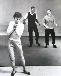 In his view, "one of our problems is that so much dancing is taught by women. You can spot many male dancers who have this tuition by their arm movements—they are soft, limp, and feminine."[13] He acknowledged that in spite of his efforts—in TV programs such as Dancing: A Man's Game (1958) for example—the situation changed little over the years.[13] He also sought to break from the class-conscious conventions of the 1930s and early 40s, when top hat and tails or tuxedos were the norm, by dancing in casual or everyday work clothes, so as to make his dancing more relevant to the cinema-going public. His first wife, actress and dancer Betsy Blair said: