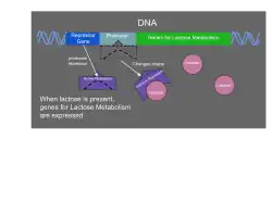 When lactose is present in a prokaryote, it acts as an inducer and inactivates the repressor so that the genes for lactose metabolism can be transcribed.