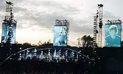 The Turn It On Again Tour featured a stage designed by architect Mark Fisher with a lighting display by Patrick Woodroffe, included a 55-metre long LED backdrop formed of 9 million LED lights.[210] The European leg saw close to 400,000 tickets sold in 40 minutes for shows in Germany and the Netherlands.[211] The European leg ended with a free concert on 14 July at the Circus Maximus in Rome in front of around half a million people.[212][213] This was filmed and released on DVD the following year as When in Rome 2007. A live album formed of recordings from various European dates was released in 2007 as Live over Europe 2007.[214] On 7 July, the band played at the Live Earth concert in London at Wembley Stadium.[215]