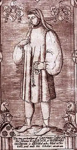 Portrait of Chaucer from a 1412 manuscript by Thomas Hoccleve, who may have met Chaucer