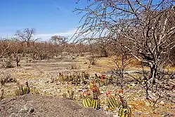 In the semiarid Northeast, caatinga, a dry, thick, thorny vegetation, predominates.[1] Most of central Brazil is covered with a woodland savanna, known as the cerrado (sparse scrub trees and drought-resistant grasses), which became an area of agricultural development after the mid-1970s.[1] In the South (Sul), needle-leaved pinewoods (Paraná pine or araucaria) cover the highlands; grassland similar to the Argentine pampa covers the sea-level plains.[1] The Mato Grosso swamplands (Pantanal Mato-grossense) is a Florida-sized plain in the western portion of the Center-West (Centro-Oeste).[1] It is covered with tall grasses, bushes, and widely dispersed trees similar to those of the cerrado and is partly submerged during the rainy season.[1]