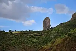 Parallel with the eastern escarpment are the heights of Biala, 3,810 m (12,500 ft), Mount Abuna Yosef, 4,190 m (13,747 ft), and Kollo, 4,300 m (14,108 ft), the last-named being southwest of Magdala. Between Lake Tana and the eastern hills are Mounts Guna, 4,210 m (13,812 ft), and Uara Sahia, 3,960 m (12,992 ft).[4] In the Choqa Mountains of Misraq Gojjam, Mount Choqa (also known as Mount Birhan) attains a height of 4,154 m (13,629 ft).