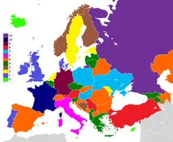 | 2 | Andorra, Estonia, Liechtenstein, Moldova, Sweden |