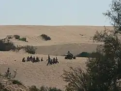 The Negev Desert comprises approximately 12,000 square kilometers (4,633 sq mi), more than half of Israel's total land area.[19] Geographically it is an extension of the Sinai Desert, forming a rough triangle with its base in the north near Beersheba, the Dead Sea, and the southern Judean Mountains, and it has its apex in the southern tip of the country at Eilat.[19] Topographically, it parallels the other regions of the country, with lowlands in the west, hills in the central portion, and the Arava valley as its eastern border.[19]