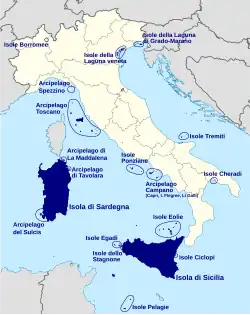 Other islands belonging to Italy are grouped into the following archipelagos: