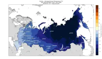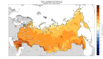 | Climate | European Russia and Siberia: mostly cool climate Extreme north: tundra Extreme southeast: temperate continental |