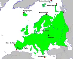 - ^ Swiss World Atlas, Physical Map of Europe, 1993 edition