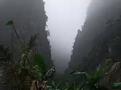 Vietnam's climate, being located in the tropics and strongly influenced by the South China Sea has a monsoon-influenced climate typical of that of mainland Southeast Asia.[5]: 25  In the north, the climate is humid subtropical and monsoonal and with four distinct seasons (Spring, Summer, Autumn, and Winter) while in the central and south, the climate is tropical monsoon with two seasons (rainy and dry).[6][7][8] In addition, temperate climate exists in mountainous areas, which are found in Sa Pa and Da Lat, while a more continental climate exists in Lai Châu province and Sơn La province.[6] The diverse topography, wide range of latitudes (Vietnam spans over 15° of latitude), and influences from the South China Sea lead to climatic conditions varying significantly between regions.[9]: 24