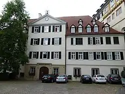 Hegel was born on 27 August 1770 in Stuttgart, capital of the Duchy of Württemberg in the Holy Roman Empire (now southwestern Germany). Christened Georg Wilhelm Friedrich, he was known as Wilhelm to his close family. His father, Georg Ludwig Hegel (1733–1799), was secretary to the revenue office at the court of Karl Eugen, Duke of Württemberg.[4][5] Hegel's mother, Maria Magdalena Louisa Hegel, née Fromm (1741–1783), was the daughter of a lawyer at the High Court of Justice at the Württemberg court Ludwig Albrecht Fromm (1696–1758). She died of bilious fever when Hegel was thirteen. Hegel and his father also caught the disease but narrowly survived.[6] Hegel had a sister, Chistiane Luise (1773–1832); and a brother, Georg Ludwig (1776–1812), who perished as an officer during Napoleon's 1812 Russian campaign. At the age of three, Hegel went to the German School. When he entered the Latin School two years later, he already knew the first declension, having been taught it by his mother.[7] In 1776, he entered Stuttgart's Eberhard-Ludwigs-Gymnasium and during his adolescence read voraciously, copying lengthy extracts in his diary. Authors he read include the poet Friedrich Gottlieb Klopstock and writers associated with the Enlightenment, such as Christian Garve and Gotthold Ephraim Lessing. Hegel's first biographer, Karl Rosenkranz, described in 1844 the young Hegel's education there by saying that it "belonged entirely to the Enlightenment with respect to principle, and entirely to classical antiquity with respect to curriculum."[8] His studies at the Gymnasium concluded with his graduation speech, "The abortive state of art and scholarship in Turkey."[9]