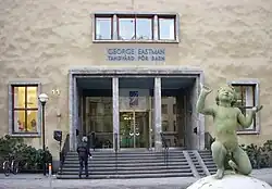 ![]() Medallion depicting Eastman hanging in the entrance hall of Eastmaninstitutet |