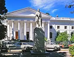 Grey was born in Lisbon, Portugal, just a few days after his father, Lieutenant-Colonel George Grey, was killed at the Battle of Badajoz in Spain.[2] He was educated in England. After military service (1829–37) and two explorations in Western Australia (1837–39), Grey became Governor of South Australia in 1841. He oversaw the colony during a difficult formative period. Despite being less hands-on than his predecessor George Gawler, his fiscally responsible measures ensured the colony was in good shape by the time he departed for New Zealand in 1845.[4]