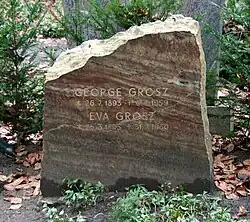 George Grosz (/ɡroʊs/; German: [ɡʁoːs] ⓘ; born Georg Ehrenfried Groß; July 26, 1893 – July 6, 1959) was a German artist known especially for his caricatural drawings and paintings of Berlin life in the 1920s. He was a prominent member of the Berlin Dada and New Objectivity groups during the Weimar Republic. He emigrated to the United States in 1933, and became a naturalized citizen in 1938. Abandoning the style and subject matter of his earlier work, he exhibited regularly and taught for many years at the Art Students League of New York. In 1959 he returned to Berlin, where he died shortly afterwards.