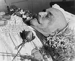 Gurdjieff died of cancer at the American Hospital in Neuilly-sur-Seine, France, on 29 October 1949.[35] His funeral took place at the St. Alexandre Nevsky Russian Orthodox Cathedral at 12 Rue Daru, Paris. He is buried in the cemetery at Avon (near Fontainebleau).[36]