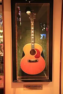 Harrison released several best-selling singles and albums as a solo performer. In 1988, he co-founded the platinum-selling supergroup the Traveling Wilburys. A prolific recording artist, he was featured as a guest guitarist on tracks by Badfinger, Ronnie Wood, and Billy Preston, and collaborated on songs and music with Dylan, Eric Clapton, Ringo Starr, and Tom Petty. Rolling Stone magazine ranked him number 31 in their 2023 list of greatest guitarists of all time.[4] He is a two-time Rock and Roll Hall of Fame inductee – as a member of the Beatles in 1988, and posthumously for his solo career in 2004.[5] A lifelong smoker, Harrison died of cancer in 2001 at the age of 58, two years after surviving a knife attack by an intruder at his home.