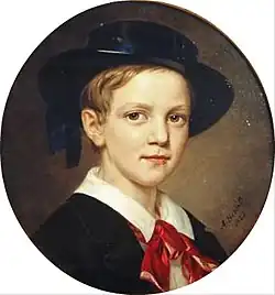 George was born on 24 December 1845 at his parents' residence the Yellow Palace, an 18th-century town house at 18 Amaliegade, next to the Amalienborg Palace complex in Copenhagen. He was the second son and third child of Prince Christian of Schleswig-Holstein-Sonderburg-Glücksburg and Princess Louise of Hesse-Kassel.[1] He was baptised with the names Christian William Ferdinand Adolph George, and until his accession in Greece, he was known as Prince William,[2] the namesake of both his grandfathers, William, Duke of Schleswig-Holstein-Sonderburg-Glücksburg, and Prince William of Hesse-Kassel.