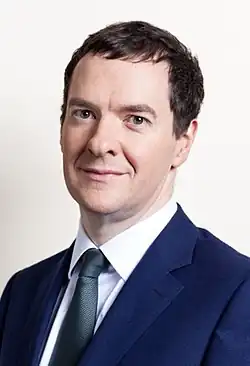 George Gideon Oliver Osborne CH (born 23 May 1971) is a British retired politician and newspaper editor who served as Chancellor of the Exchequer from 2010 to 2016 and as First Secretary of State from 2015 to 2016 in the Cameron government. A member of the Conservative Party, he was Member of Parliament (MP) for Tatton from 2001 to 2017.[1]