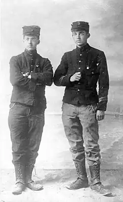 In 1911, Lemaître began to study engineering at the Catholic University of Louvain. In 1914, after the outbreak of World War I, Lemaître interrupted his studies to volunteer for the Belgian army. He participated in the Battle of the Yser, in which the Belgians succeeded in halting the German advance. When the army transferred him from the infantry to artillery, Lemaître was sent to complete a course on ballistics. His prospects of promotion to officer rank were dashed after he was marked down for insubordination as a result of pointing out to the instructor a mathematical error in the official artillery manual.[11] However, at the end of hostilities he received the Belgian War Cross with bronze palm,[14] one of only five rank-and-file troops to receive that award from the hands of King Albert I.[11]