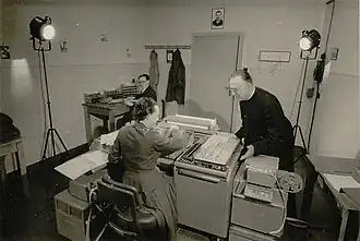 With Manuel Sandoval Vallarta, whom he had met at MIT, Lemaître showed that the intensity of cosmic rays varies with latitude because they are composed of charged particles and therefore are deflected by the Earth's magnetic field.[47] In their calculations, Lemaître and Vallarta made use of MIT's new differential analyzer computer, developed by Vannevar Bush.[48] That work disproved the view, advocated among others by the Nobel laureate Robert Millikan, that cosmic rays were composed of high-energy photons. Lemaître and Vallarta also worked on a theory of primary cosmic radiation and applied it to their investigations of the Sun's magnetic field and the effects of the galaxy's rotation.