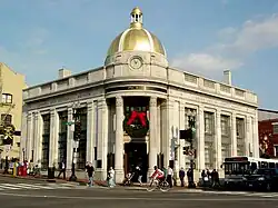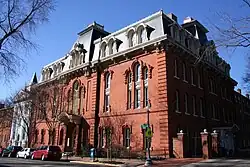 The District of Columbia Public Library operates the Georgetown Neighborhood Library,[43] which originally opened at 3260 R St. NW in October 1935 on the site of the former Georgetown Reservoir. An earlier public library in Georgetown was endowed by financier George Peabody in 1867 and opened in a room of the Curtis School on O Street opposite St. John's Church in 1875. In the early 1930s, a library committee was formed to encourage the establishment of a new public library branch in Georgetown.[44]