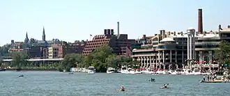 Georgetown is home to many politicians and lobbyists. Georgetown's landmark waterfront district was further revitalized in 2003, and includes a Ritz-Carlton, Four Seasons, and other hotels.[31] Georgetown's highly traveled commercial district is home to a variety of specialty retailers and fashionable boutiques.