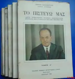- ^ Dēmētrios Nik Chondrokoukēs (1976). Hoi anentimoi kai ho "Aspida". Kedros. p. 300.