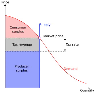 Georgists have observed that privately created wealth is socialized via the tax system (e.g., through income and sales tax), while socially created wealth in land values are privatized in the price of land titles and bank mortgages. The opposite would be the case if land rents replaced taxes on labor as the main source of public revenue; socially created wealth would become available for use by the community, while the fruits of labor would remain private.[26] According to Georgists, a land value tax can be considered a user fee instead of a tax, since it is related to the market value of socially created locational advantage, the privilege to exclude others from locations. Assets consisting of commodified privilege can be considered wealth since they have exchange value, similar to taxi medallions.[27] A land value tax, charging fees for exclusive use of land, as a means of raising public revenue is also a progressive tax tending to reduce economic inequality,[16][17] since it applies entirely to ownership of valuable land, which correlates with income,[28] and there is generally no means by which landlords can shift the tax burden onto tenants or laborers. Landlords cannot pass the tax on to tenants because the supply and demand of rented land is unchanged. Because the supply of land is perfectly inelastic, land rents depend on what tenants are prepared to pay, rather than on the expenses of landlords, and so the tax cannot be passed on to tenants.[29]
