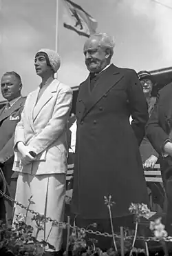 Hauptmann had taken up a lavish lifestyle, lived in expensive hotels, often received guests, and took trips to Italy. He summered in his large house on the Hiddensee, that Günter Kunert called a "do-it-yourself Olympia."[25] Thomas Mann referred to this lavish lifestyle when he called him in 1922 the "King of the Republic."[26] Mann met Hauptmann at an Alpine resort and wrote to his brother, "I hobnob every evening with Hauptmann, who is a really good fellow." In addition Mann adapted some of Hauptmann's traits for his character Mynheer Peeperkorn in his book The Magic Mountain.[27]