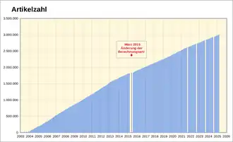 - ^ Statistics of German Wikipedia (English). German Wikipedia.