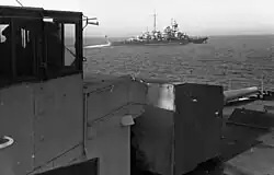 On 5 April 1940, Konteradmiral (Rear Admiral) Oskar Kummetz came aboard the ship while she was in Swinemünde. An 800-strong detachment of ground troops from the 163rd Infantry Division also boarded. Three days later, on 8 April, Blücher left port, bound for Norway; she was the flagship for the force that was to seize Oslo, the Norwegian capital, Group 5 of the invasion force.[15] She was accompanied by the heavy cruiser Lützow (the former Deutschland), the light cruiser Emden, and several smaller escorts. The British submarine Triton spotted the convoy steaming through the Kattegat and Skagerrak, and fired a spread of torpedoes; the Germans evaded the torpedoes, however, and proceeded with the mission.[14]