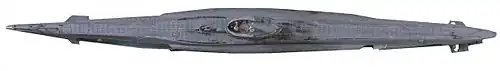 German Type VIIB submarines were preceded by the shorter Type VIIA submarines. U-47 had a displacement of 753 tonnes (741 long tons) when at the surface and 857 tonnes (843 long tons) while submerged.[5] She had a total length of 66.50 m (218 ft 2 in), a pressure hull length of 48.80 m (160 ft 1 in), a beam of 6.20 m (20 ft 4 in), a height of 9.50 m (31 ft 2 in), and a draught of 4.74 m (15 ft 7 in). The submarine was powered by two Germaniawerft F46 four-stroke, six-cylinder supercharged diesel engines producing a total of 2,800 to 3,200 PS (2,060 to 2,350 kW; 2,760 to 3,160 shp) for use while surfaced, two AEG GU 460/8-276 double-acting electric motors producing a total of 750 PS (550 kW; 740 shp) for use while submerged. She had two shafts and two 1.23 m (4 ft) propellers. The boat was capable of operating at depths of up to 230 metres (750 ft).[5]
