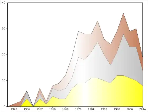 - ^ Counting the eleven Games where both East Germany (GDR) and West Germany (FRG) competed as two appearances.