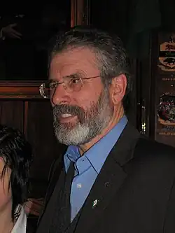 Gerard Adams (Irish: Gearóid Mac Ádhaimh;[1] born 6 October 1948) is a retired Irish Republican politician who was the president of Sinn Féin between 13 November 1983 and 10 February 2018, and served as a Teachta Dála (TD) for Louth from 2011 to 2020.[2][3] From 1983 to 1992 and from 1997 to 2011, he won election as a Member of Parliament (MP) of the UK Parliament for the Belfast West constituency, but followed the Sinn Féin policy of abstentionism.