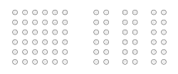 The law of proximity states that when an individual perceives an assortment of objects, they perceive objects that are close to each other as forming a group. For example, in the figure illustrating the law of proximity, there are 72 circles, but we perceive the collection of circles in groups. Specifically, we perceive that there is a group of 36 circles on the left side of the image and three groups of 12 circles on the right side of the image. This law is often used in advertising logos to emphasize which aspects of events are associated.[36][37]