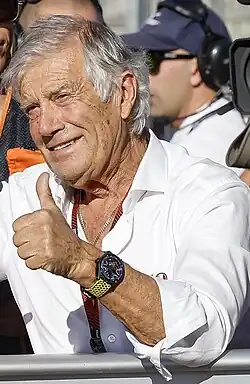 Giacomo Agostini (Italian pronunciation: [ˈdʒaːkomo aɡoˈstiːni]; born 16 June 1942) is an Italian former professional motorcycle road racer and racing team manager. He competed in the FIM Grand Prix motorcycle racing World Championships from 1963 to 1977, most prominently as a member of the MV Agusta factory racing team.[1] Agostini was the preeminent motorcycle racer of the late 1960s and early 1970s, amassing 122 Grand Prix victories and 15 World Championships, the most by any competitor in the history of Grand Prix motorcycle racing.[2][3] He won seven consecutive 500cc World Championships with MV Agusta between 1966 and 1972, plus seven consecutive 350cc world championships between 1968 and 1974. Agostini was also a ten-time winner of the Isle of Man TT.