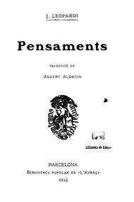 - Leopardi, Giacomo (2002). Thoughts. Translated by J.G. Nichols. London: Hesperus Classics. ISBN 978-1-84391-012-1.