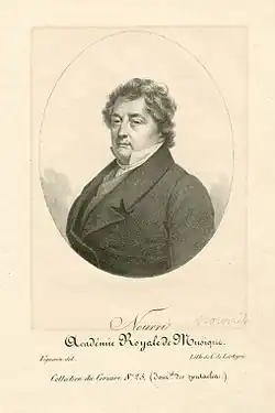 In Paris Meyerbeer had been asked by Louis Véron, the director of the Opéra, for a new work. At first, he attempted to persuade Véron to accept the opéra-comique Le portefaix to a libretto by Scribe,[n 3] which he had been contracted to compose in early 1831; but Véron insisted on a full five-act piece. Together with Scribe, Meyerbeer reviewed many subjects before deciding, in 1832, on Les Huguenots. The contract which Meyerbeer signed with Véron contained a penalty clause if the work was not delivered by the end of 1833. When the time came and the opera was not ready, Véron claimed his 30,000 francs under this clause; Meyerbeer was perhaps unique amongst composers in being able to pay this. In fact, Véron refunded the money under a further agreement, when the opera was delivered in late 1834; but Veron himself was replaced as director of the Opera by Henri Duponchel before Les Huguenots was premiered on 29 February 1836.[42] It was an immediate and immense success, its splendid staging and effects exceeding even those of Fromental Halévy's La Juive, which had premiered the previous year.[43] Berlioz called the score "a musical encyclopaedia", and the singing, especially of Nourrit and Falcon, was universally praised.[44] Les Huguenots was the first opera to be performed at the Opéra more than 1,000 times (the 1,000th performance being on 16 May 1906)[45] and continued to be produced up to 1936, more than a century after its premiere.[46] Its many performances in all other of the world's major opera houses give it a claim to being the most successful opera of the 19th century.