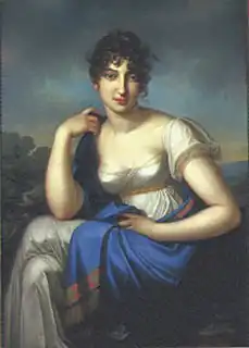Beer, as he still named himself, studied with Antonio Salieri and the German master and friend of Goethe, Carl Friedrich Zelter. Louis Spohr organised a concert for Beer at Berlin in 1804 and continued his acquaintance with the lad later in Vienna and Rome.[13] A portrait of Jacob commissioned by the family at this time shows him 'confidently facing the viewer, his hair romantically dishevelled... his left hand rests on the keyboard, and his right hand grasps a musical manuscript... plac[ing] its subject in the tradition of the young Mozart'.[14] Beer's first stage work, the ballet Der Fischer und das Milchmädchen (The Fisherman and the Milkmaid) was produced in March 1810 at the Court Opera in Berlin.[15] His formal training with the Abbé Vogler at Darmstadt between 1810 and 1812 was, however, of crucial importance, and at around this time he begins to sign himself 'Meyer Beer'.[16] Here, with his fellow students (among whom was Carl Maria von Weber), he learned not only the craft of composition but also the business of music (organising concerts and dealing with publishers). Forming a close friendship with Weber and other pupils, Meyerbeer established the Harmonischer Verein (Musical Union), whose members undertook to support each other with favourable press criticism and networking.[17] On 12 February 1813 Beer received the first of the string of honours he was to accumulate throughout his life when he was appointed 'Court Composer' by Grand Duke Ludwig of Hesse-Darmstadt.[18] He was also in close contact with Ludwig van Beethoven as he played timpani at the premiere of his Seventh Symphony in December 1813. Beethoven complained that Meyerbeer was “always behind the beat”. But nonetheless, Beethoven saw musical potential in the young Beer.