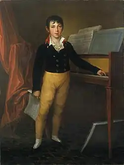 Beer's first keyboard instructor was Franz Lauska, a pupil of Johann Georg Albrechtsberger and a favoured teacher at the Berlin court.[10] Beer also became one of Muzio Clementi's pupils while Clementi was in Berlin.[11] The boy made his public debut in 1801 playing Mozart's D minor Piano Concerto in Berlin. The Allgemeine musikalische Zeitung reported: 'The amazing keyboard playing of young Bär (a Jewish lad of 9), who carried off the difficult passages and other solo parts with aplomb, and has fine powers of rendition even more rarely found in one of his age, made the concert even more interesting'.[12]