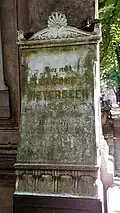 Meyerbeer died in Paris on 2 May 1864. Rossini, who, not having heard the news, came to his apartment the next day intending to meet him, was shocked and fainted. He was moved to write on the spot a choral tribute (Pleure, pleure, muse sublime!).[61] A special train bore Meyerbeer's body from the Gare du Nord to Berlin on 6 May, where he was buried in the family vault at the Jewish cemetery in Schönhauser Allee.[57]