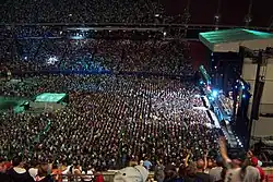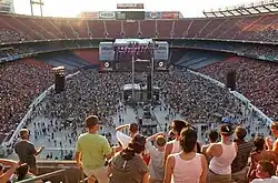 September 23–24, 2009: U2 played two consecutive sold-out shows at Giants Stadium, their last two shows at the famous venue, as part of their U2 360 tour. On the second night of the performance, Bono announced that the attendance record has been broken. He also joked that "not even the pope had as many people there." The final attendance was 84,467.[63]