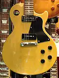 The Les Paul Special was released in 1955, featuring a slab body, two soapbar P-90 single coil pickups, and was finished in a color similar to TV Yellow (but not called a TV model). It fit in the model line between the Junior and the Standard, having the two-pickup configuration of the Standard, but featuring the simpler, more basic appointments of the Junior.